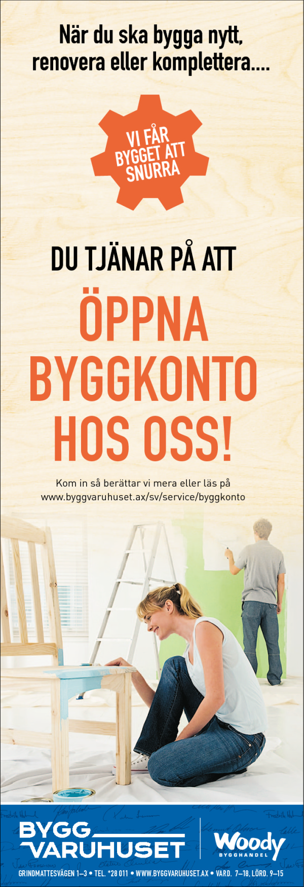 Hos oss kan du snabbt och enkelt öppna ett byggkonto. Håller du på renoverar så sparar du pengar på att öppna konto och handla hos oss. Det går även att skriva ut sin ansökan här på våran hemsida under fliken "Service" och " Byggkonto".
