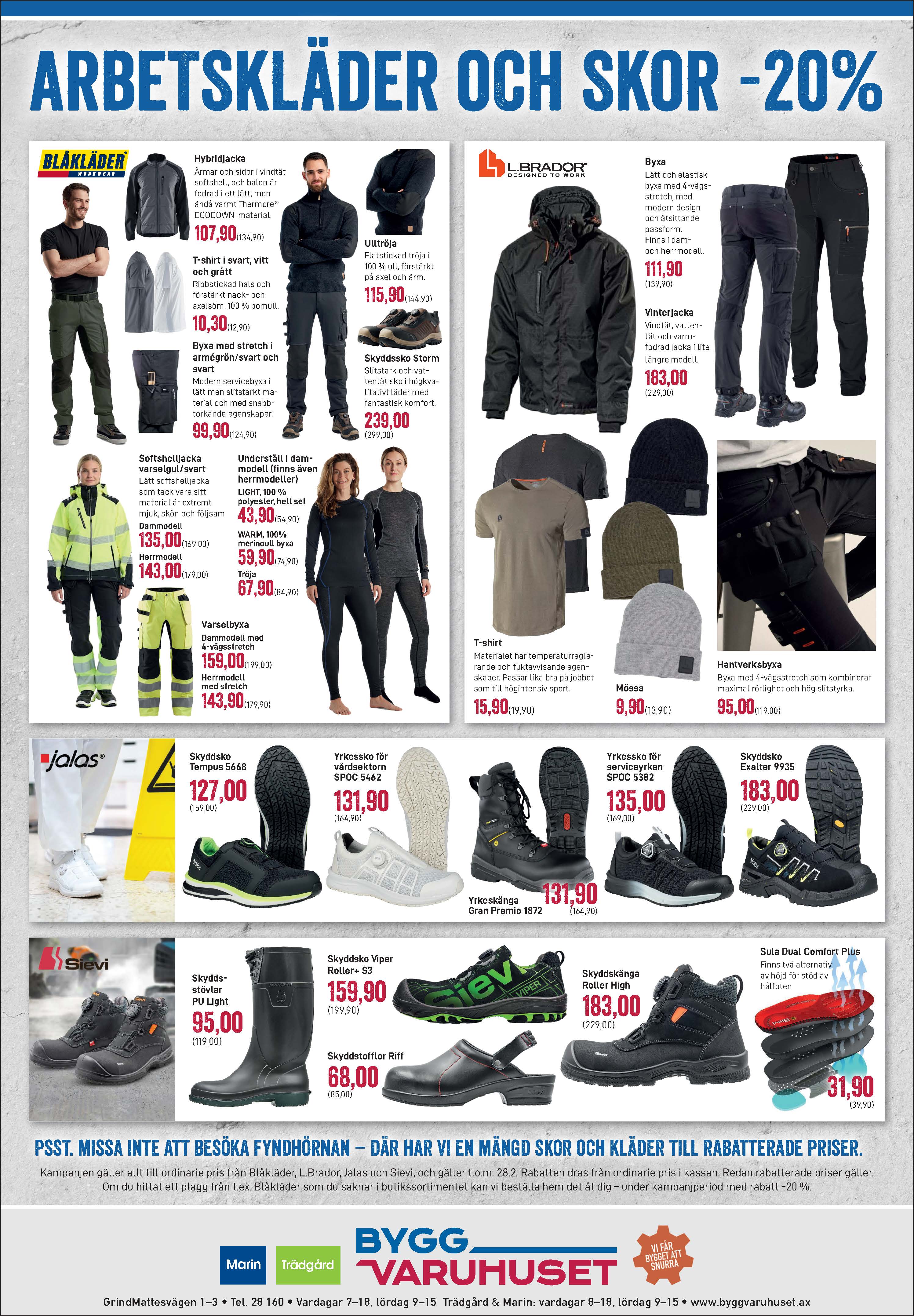 Under hela februari får du -20 % på alla kläder och skor från Blåkläder, L.Brador, Jalas och Sievi.