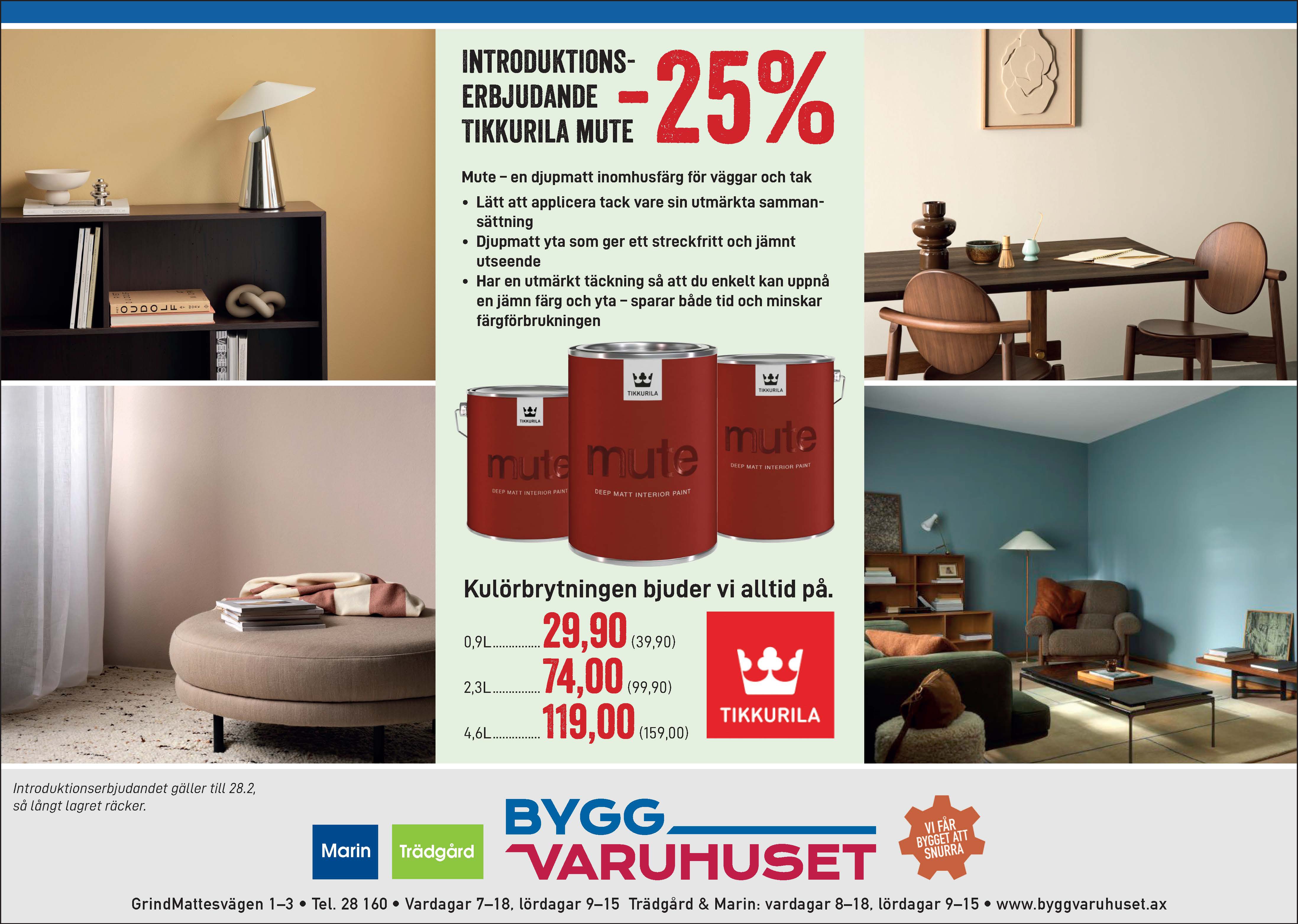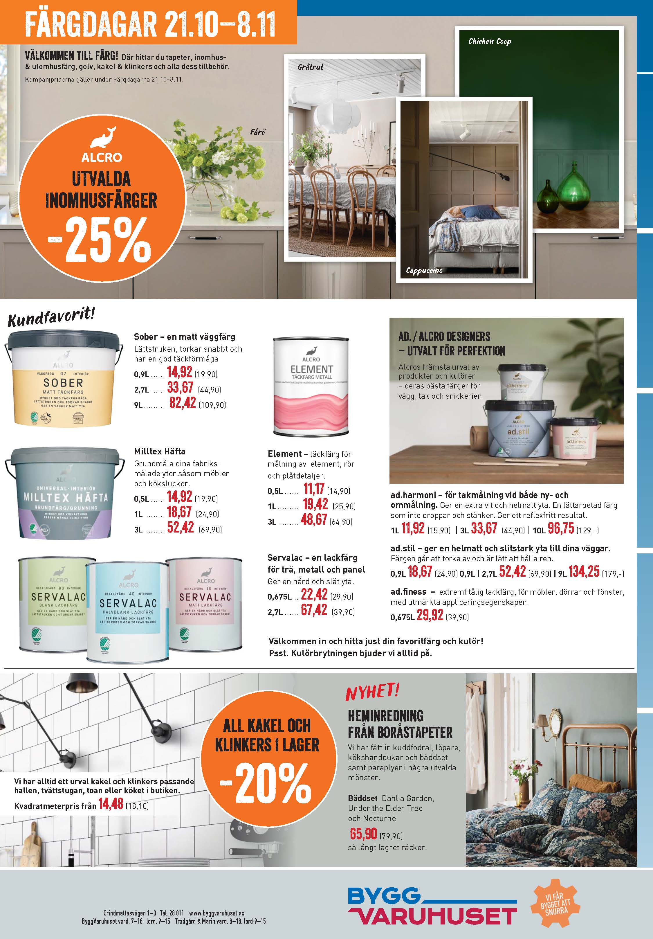 Du får -25 % rabatt på utvalda inomhusfärger från Alcro. Kulörbrytningen och våra tips och råd bjuder vi alltid på!