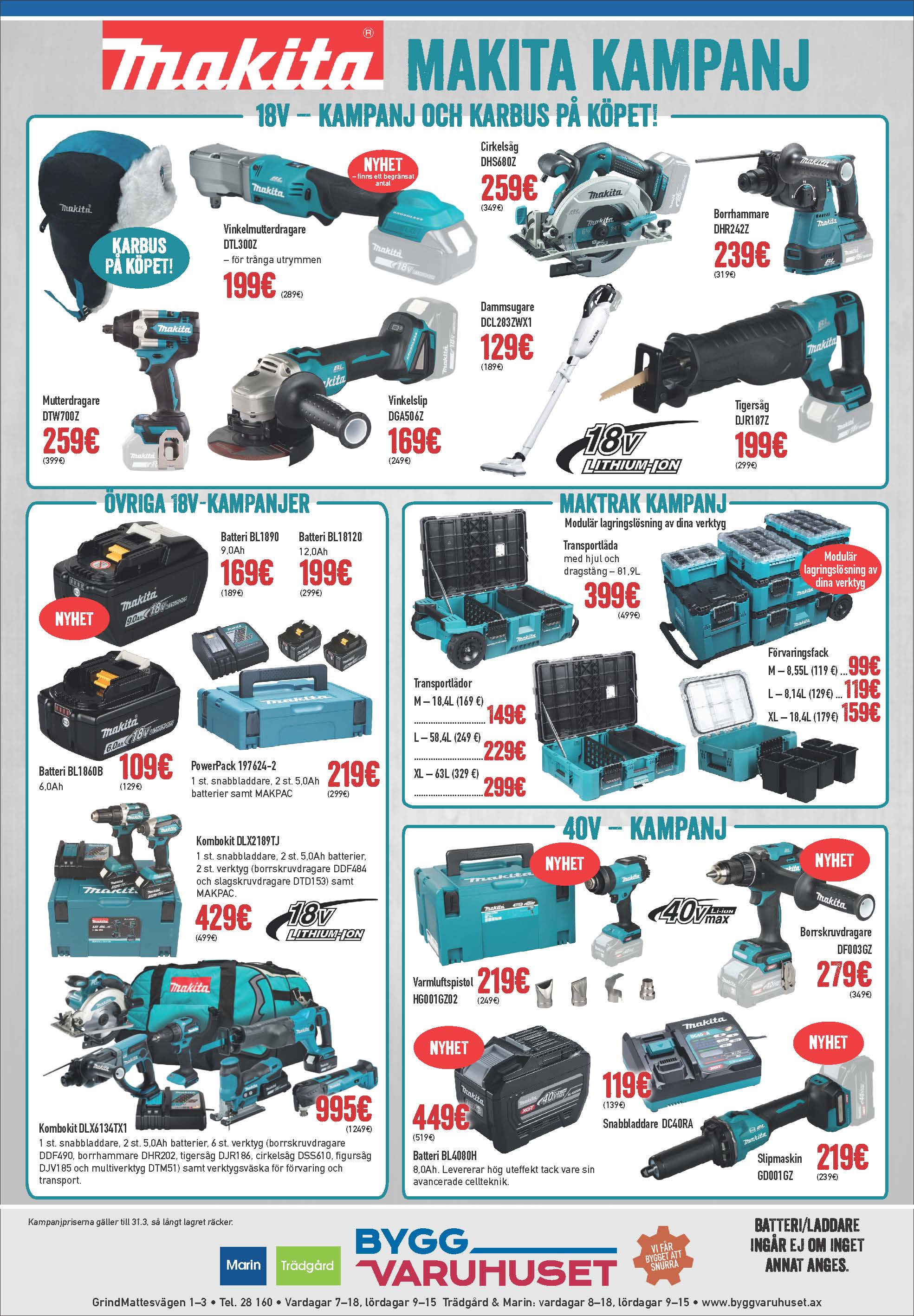 Du hittar en mängd verktyg, batterier med mera på kampanj. Det är flera nyheter och dessutom ingår vintermössa/karbus vid köp av utvalda artiklar.
