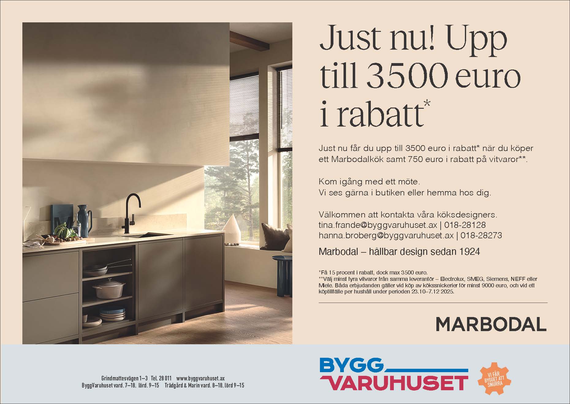 Du får upp till 3500 euro i rabatt när du köper ett Marbodalkök samt 750 euro i rabatt på vitvaror.