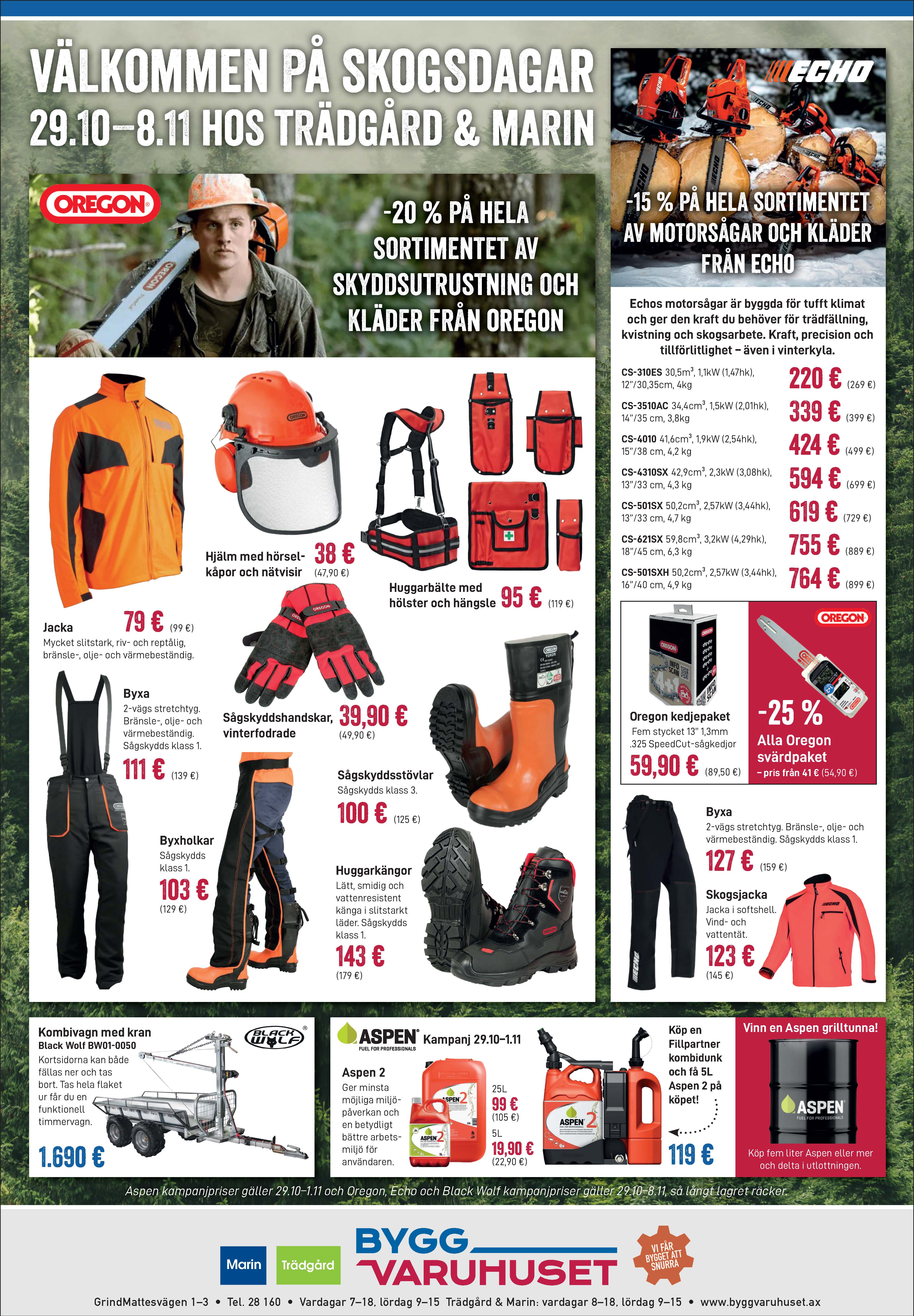 Vi har kampanj på allt du behöver för en dag skogen! Skyddsutrustning och kläder, motorsågar och tillbehör.